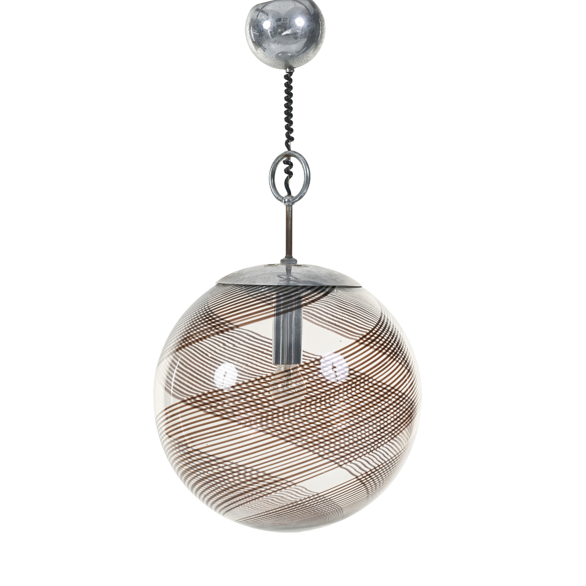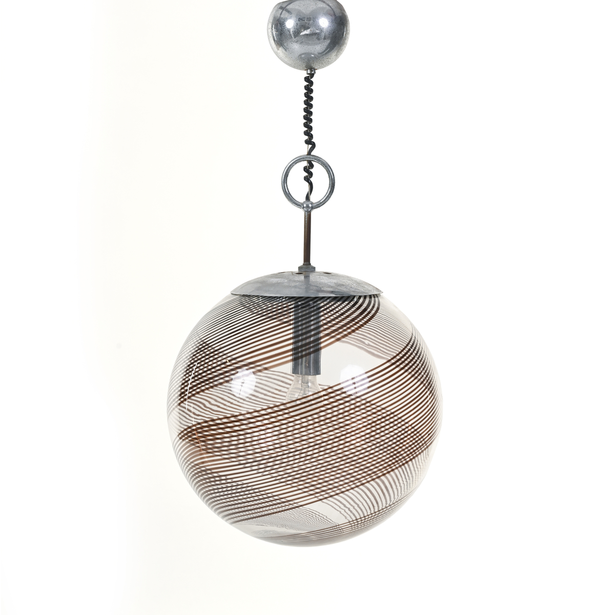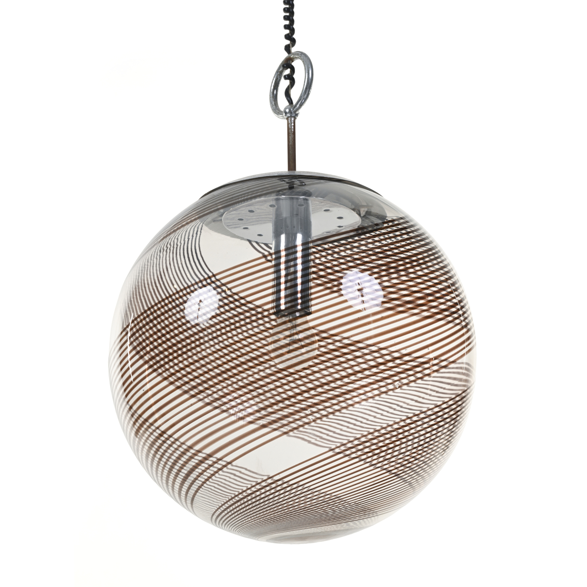 Murano glass with amethyst band decoration, chrome-plated steel ring frame