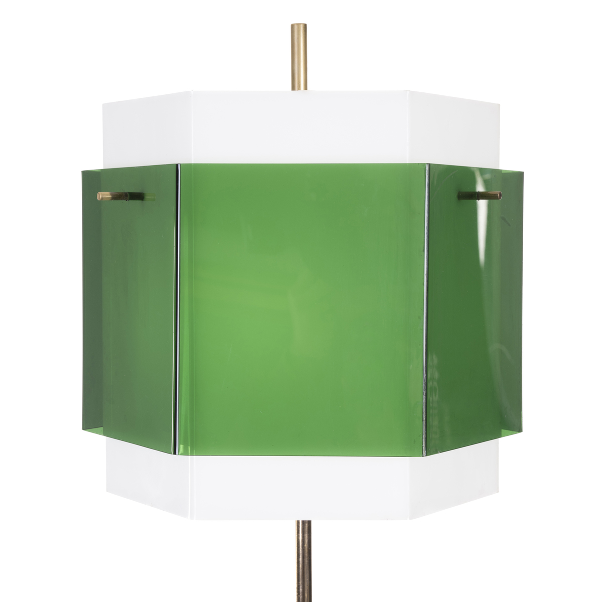Base in marmo bianco, stelo in ottone regolabile, diffusori in plexiglass bianco e verde