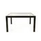 Black lacquered wood frame, brass and mother-of-pearl trim, clear-cut glass top