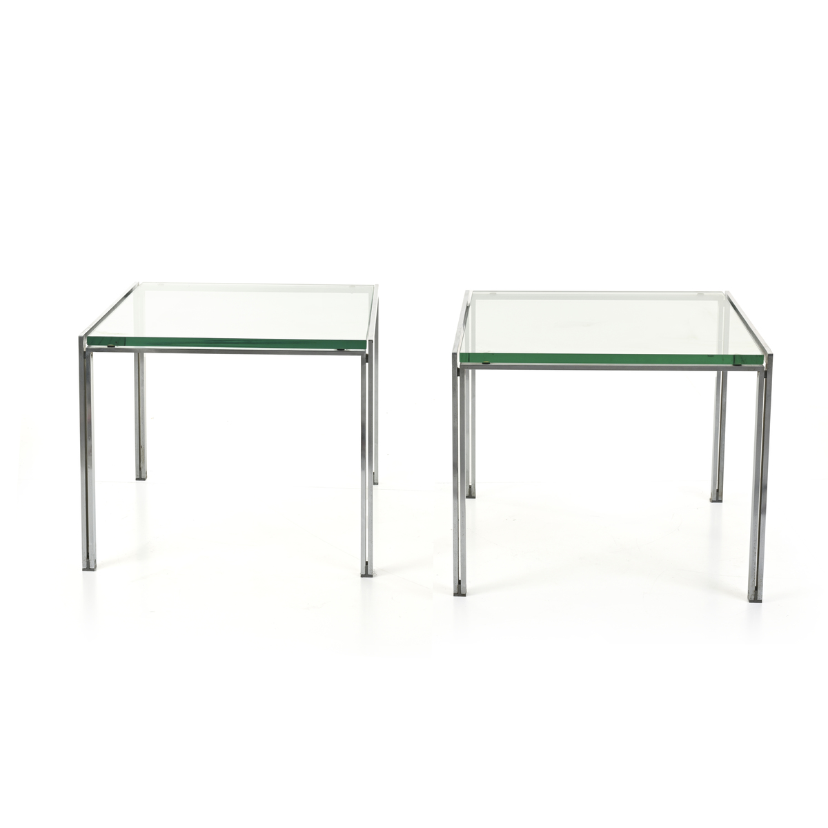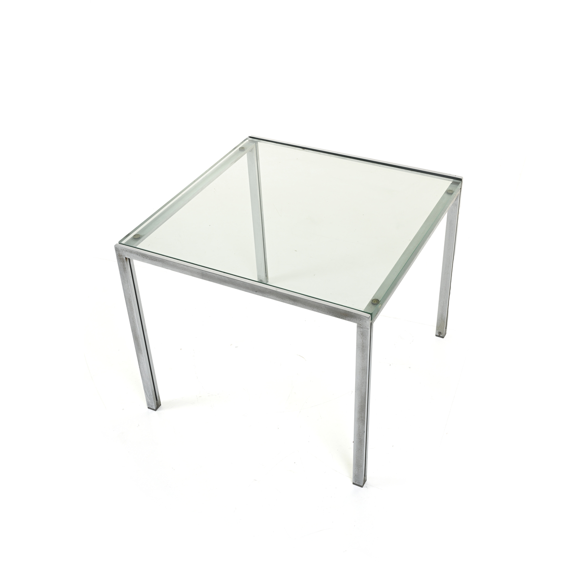 Struttura in metallo cromato, ripiano in cristallo molato trasparente