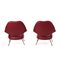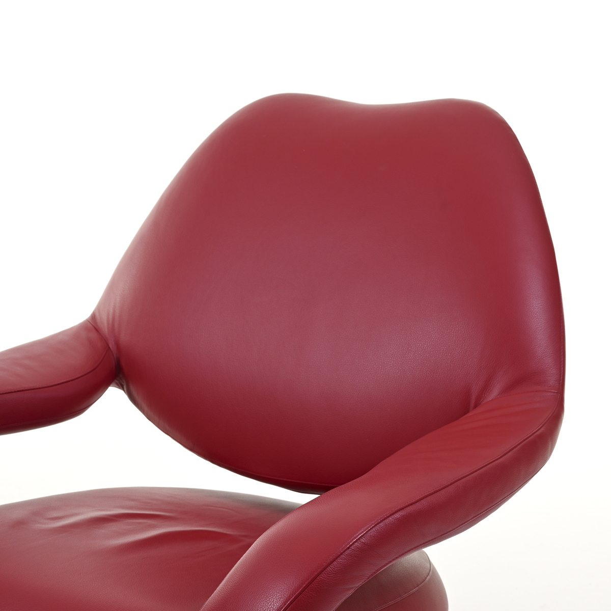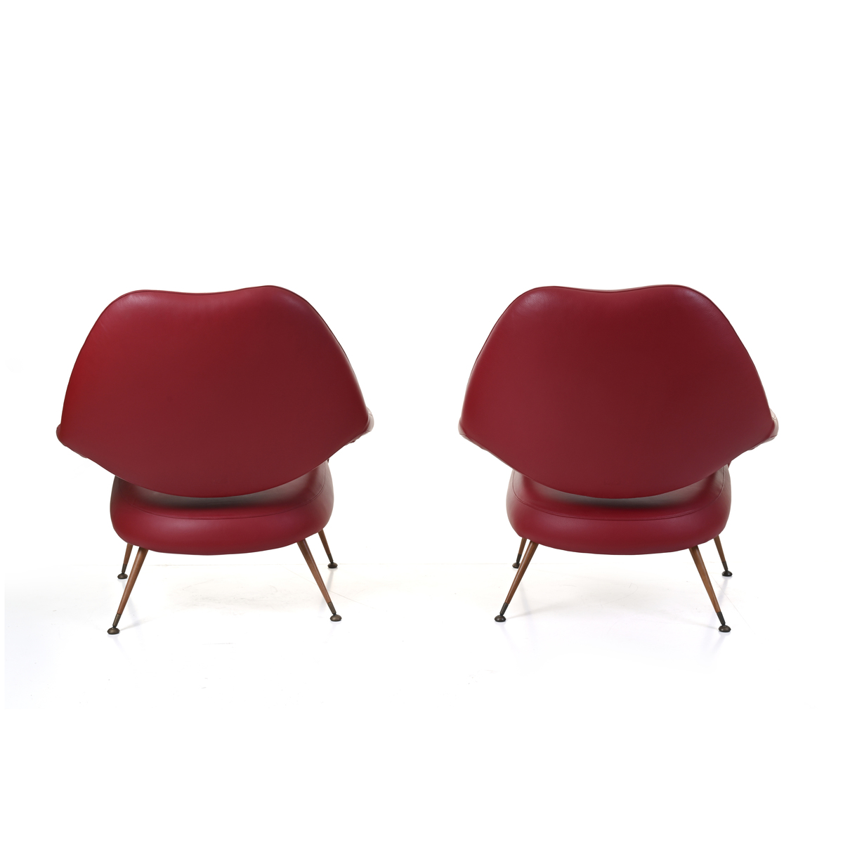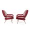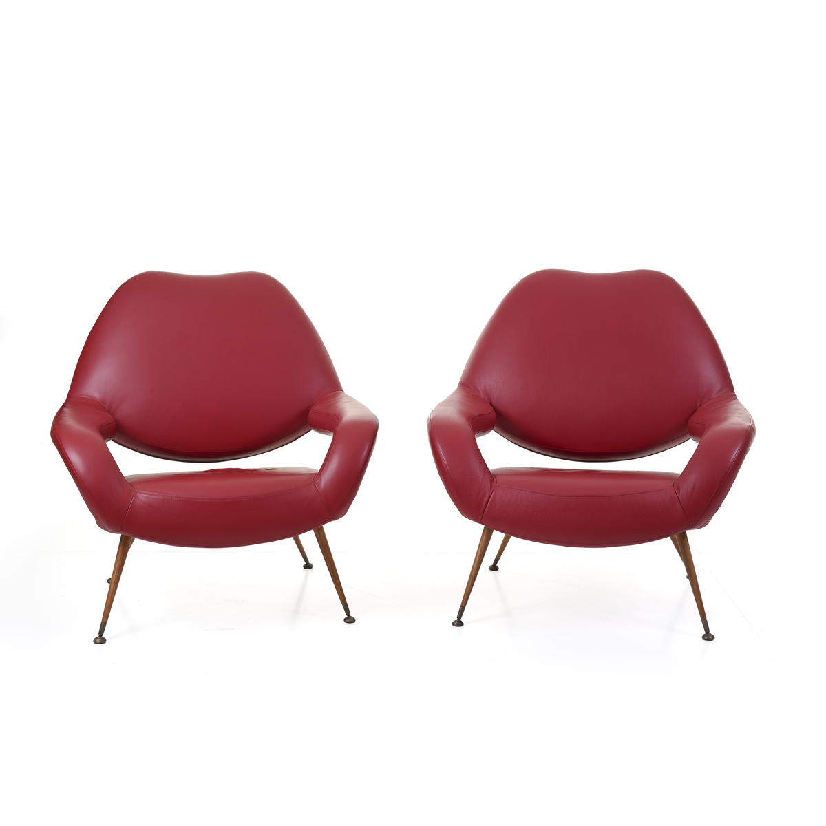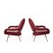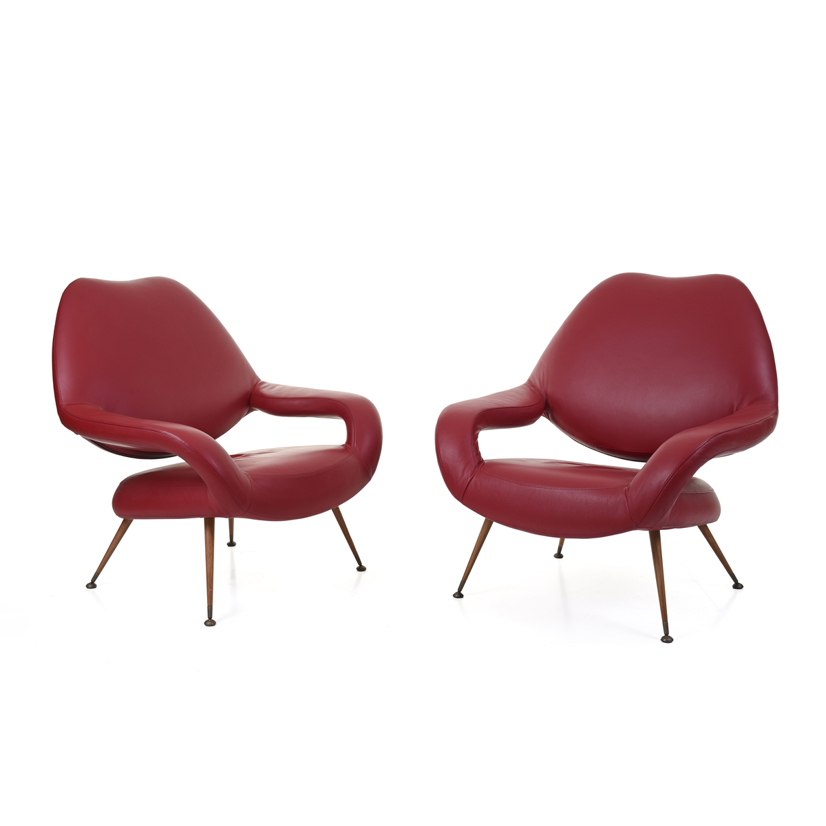 Struttura in legno, rivestimenti in pelle tinta rossa, piedini in ottone