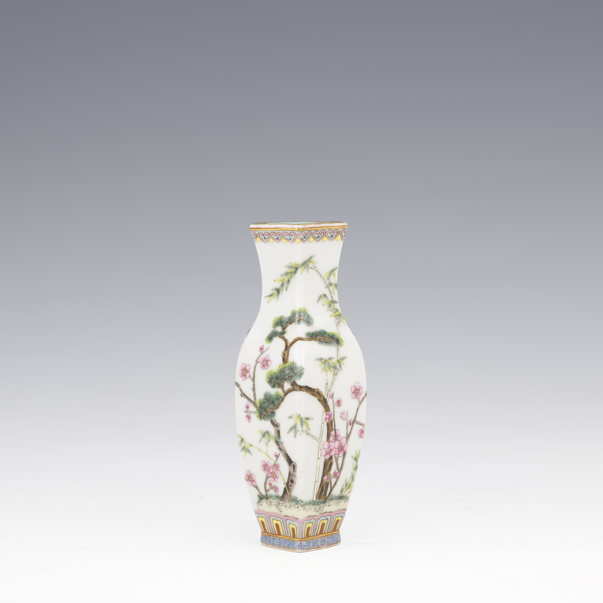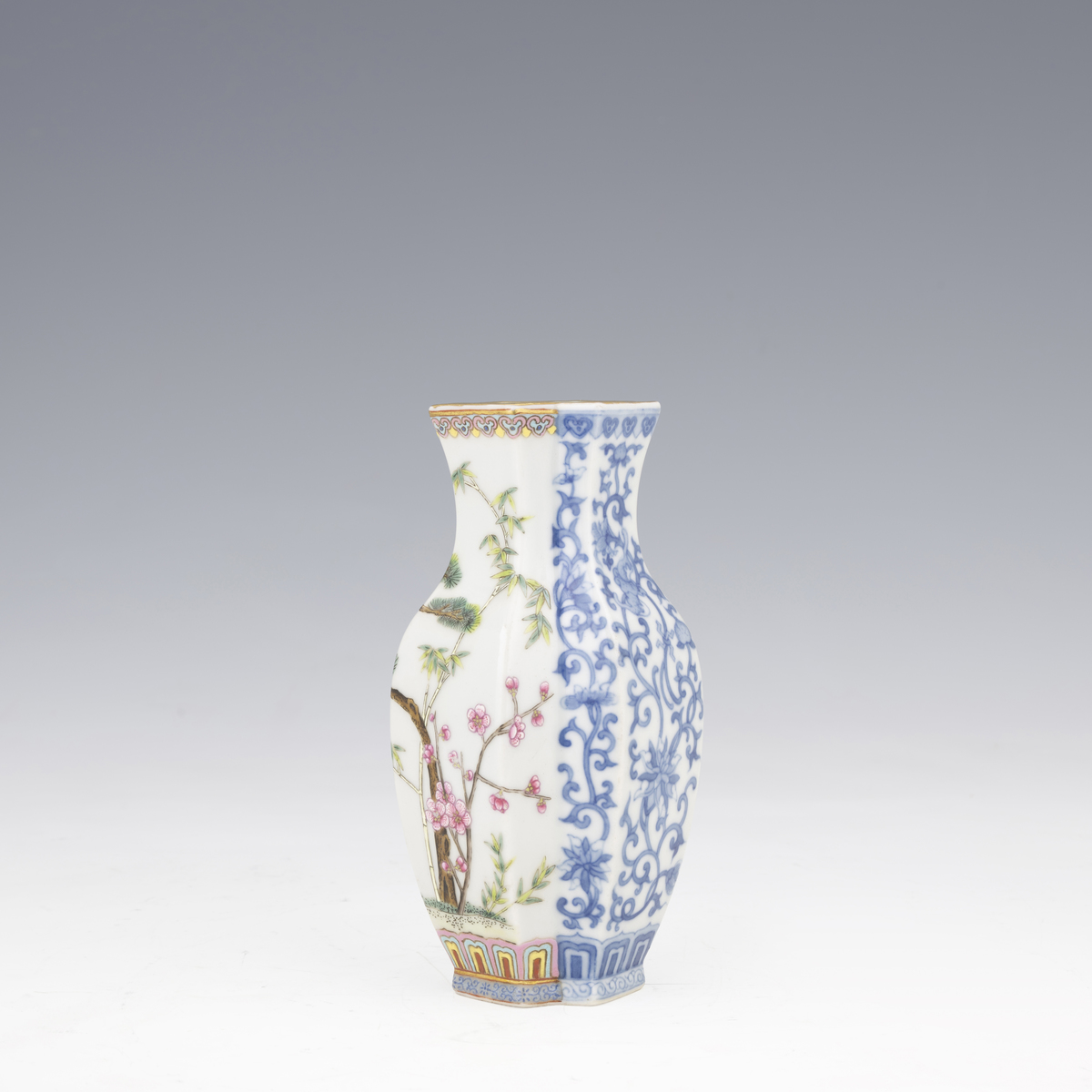 A polychrome vase with floral and plant decoration