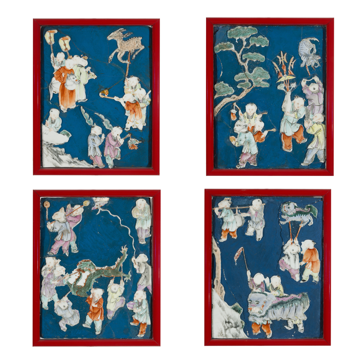 Panels decorated with plant motifs and scenes from everyday life