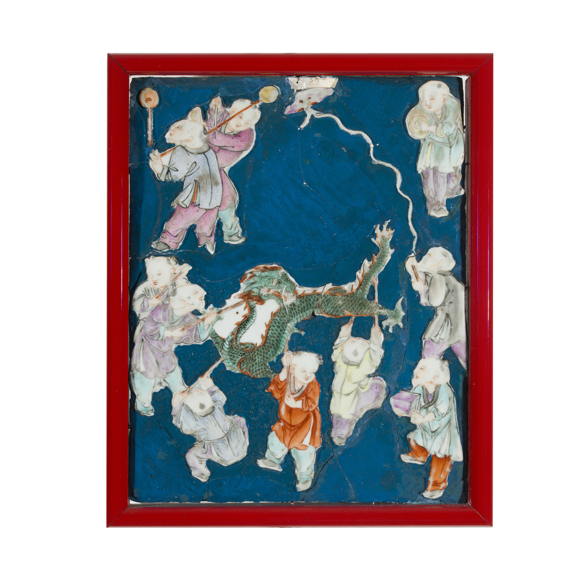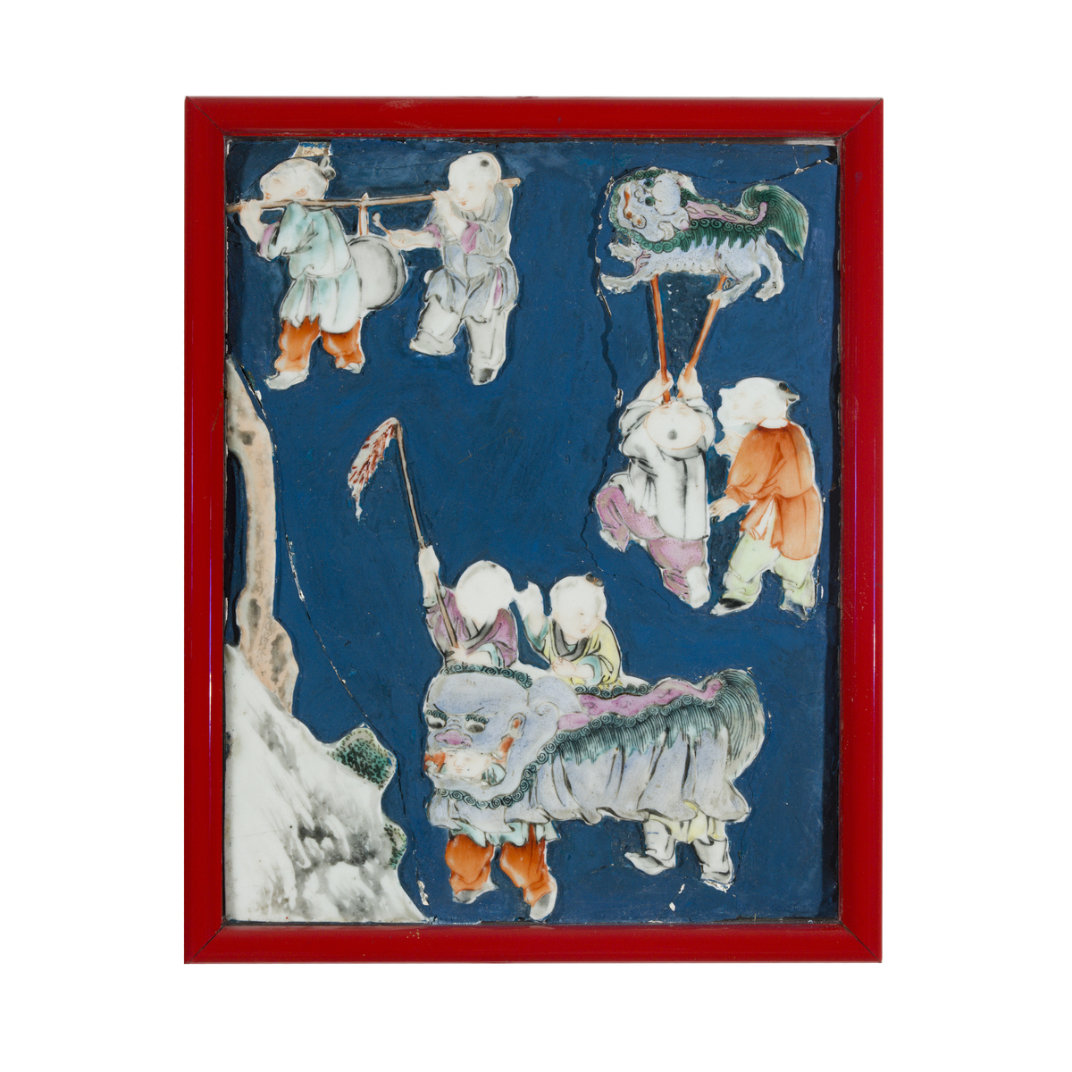 Polychrome and painted porcelain applied to wood