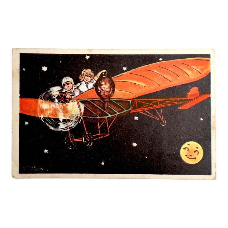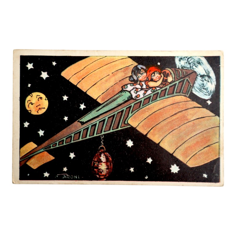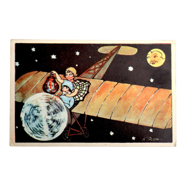 Lotto di 4 cartoline illustrate vignette aeronautiche, serie 'IICI Serie 25', firmate in lastra 'N. Azzoni'.