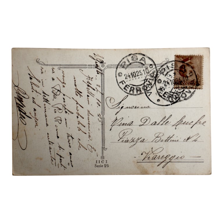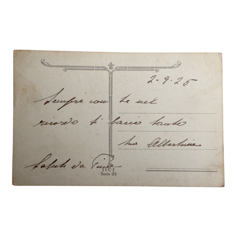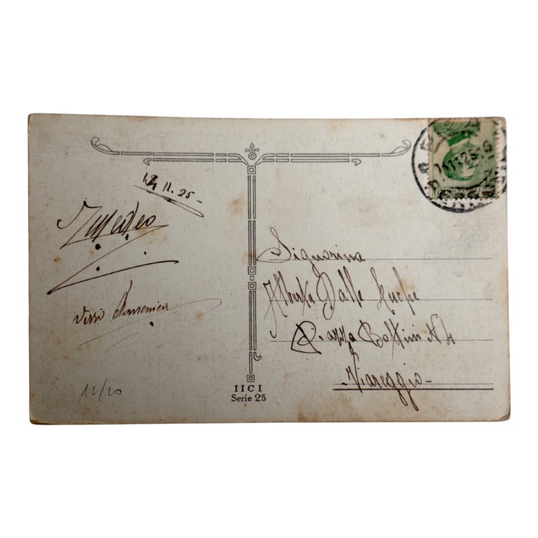 Sul verso, cartoline viaggiate con affrancature e annulli del 1925, manoscritti coevi. Stampa tipolitografica a colori. Condizioni buone, con lievi segni d'uso e patina del tempo.