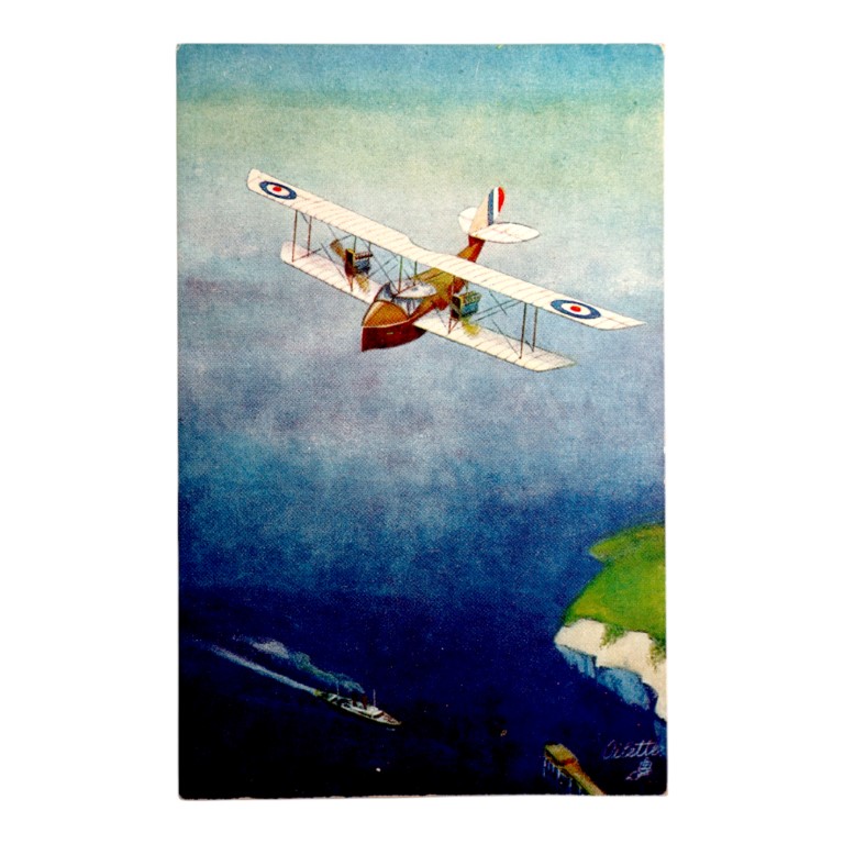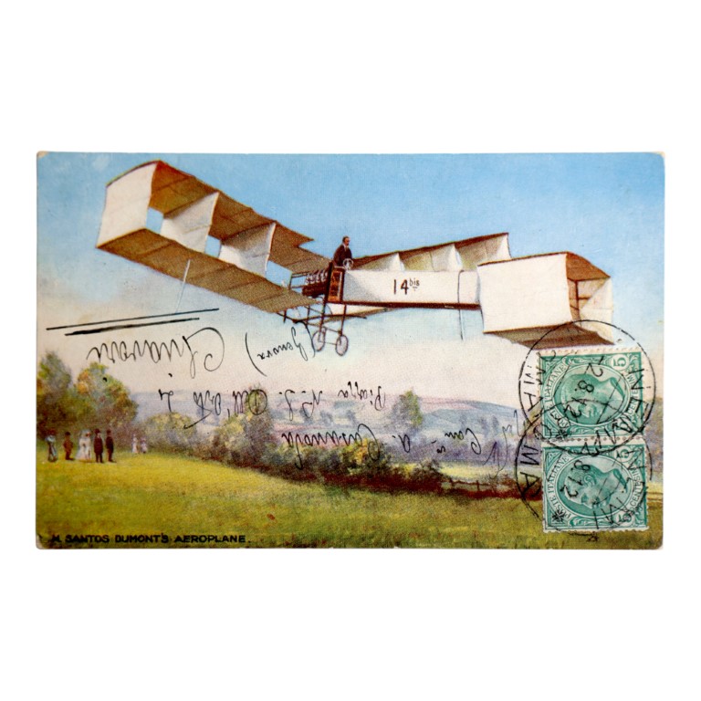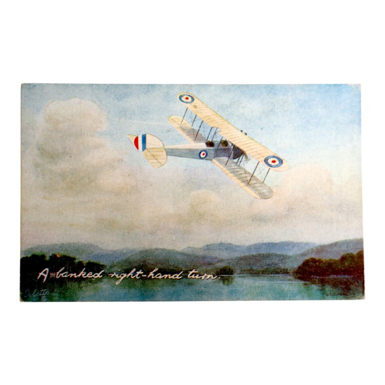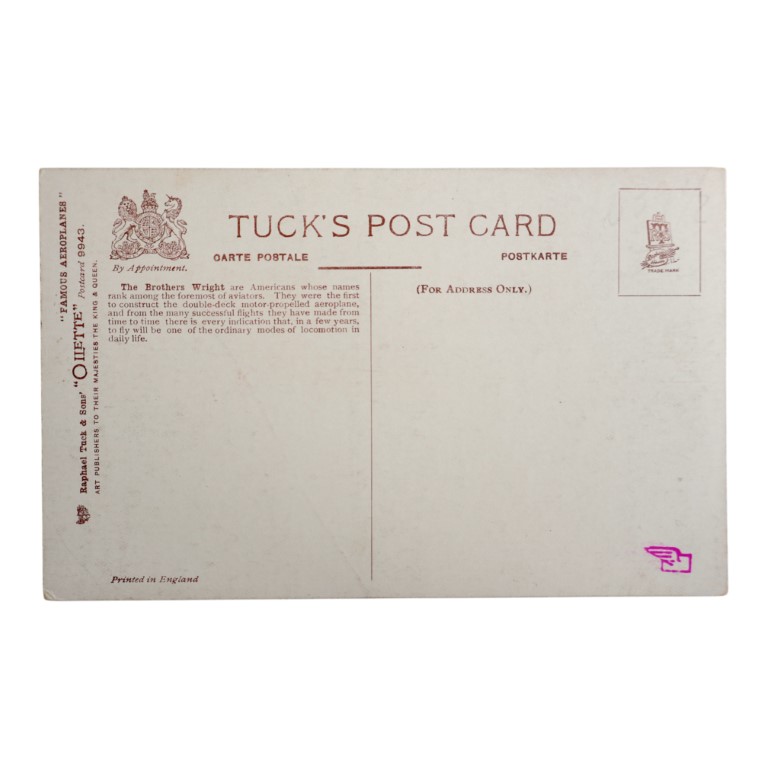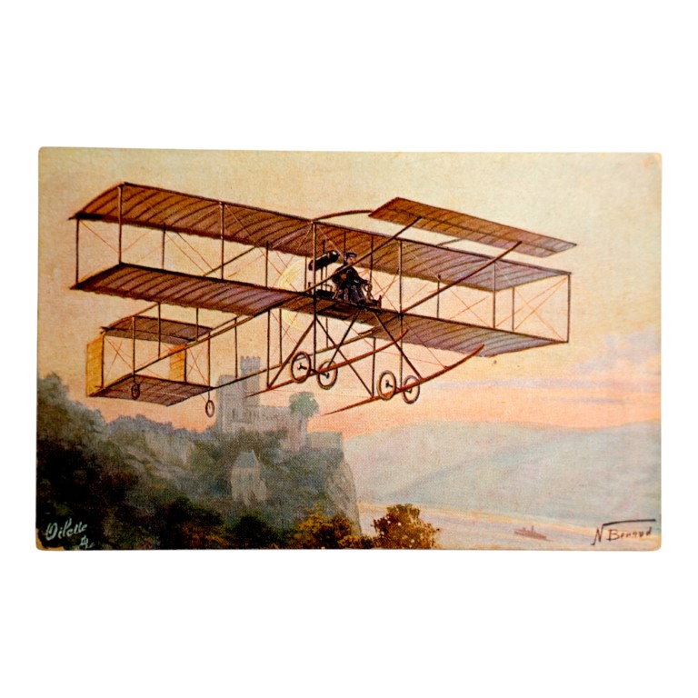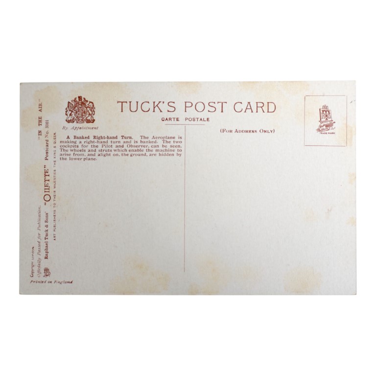 Dedicate alle prime sperimentazioni aeronautiche, agli aeroplani pionieristici e ai protagonisti dell'aviazione delle origini. Editore Raphael Tuck & Sons, serie Oilette 'In the Air' e 'Famous Aeroplanes', con diciture editoriali Tuck's Post Card / Tuck's Postkarte, By Appointment to Their Majesties the King & Queen, Printed in England. Soggetti comprendenti Climbing, Gliding with engine stopped, A banked right-hand turn, In full flight, The Wright Biplane, M. Santos Dumont's Aeroplane e altre scene di volo pionieristico. Illustrazioni firmate Oilette, G. T. Clarkson e N. Bérard. Presenti esemplari viaggiati con annulli postali e francobolli, testi manoscritti coevi al verso. Condizioni complessivamente buone, con naturale patina del tempo, lievi bruniture e sporadiche fioriture, minime tracce d'uso ai bordi e agli angoli, stato di conservazione coerente con l'epoca e l'uso postale.