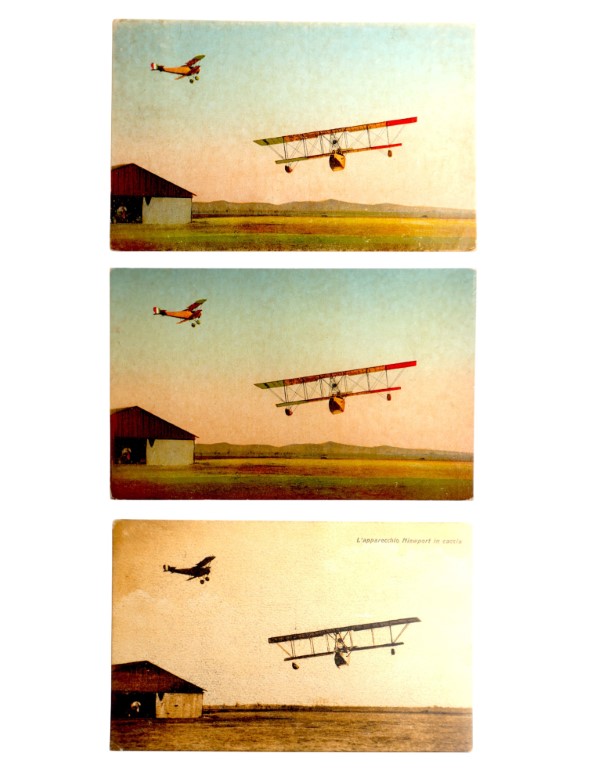Lotto di 3 cartoline postali fotografiche a soggetto aeronautico, 1916-1918.