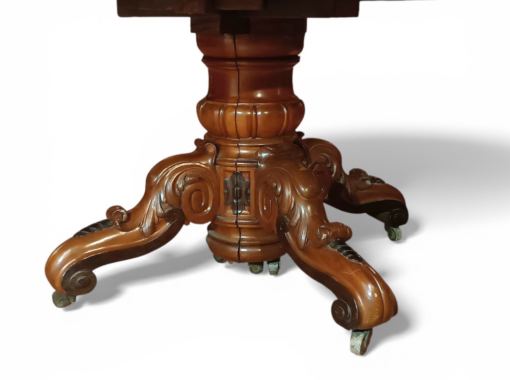 Chiuso cm 162x136x77, completo di tre prolunghe in mogano di cm 40 ciascuna