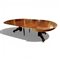 Piano ovale, fusto a balaustro riccamente intagliato, quattro gambe decorate a motivi vegetali su piedi a ricciolo con rotelle in bronzo