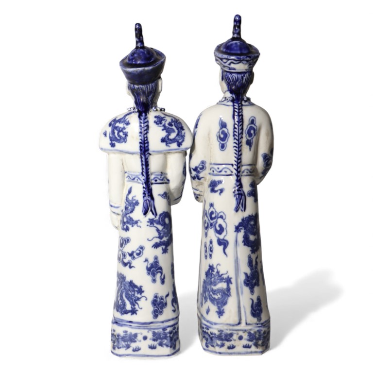 Lot 141 | Coppia di figure orientali in porcellana bianca e blu