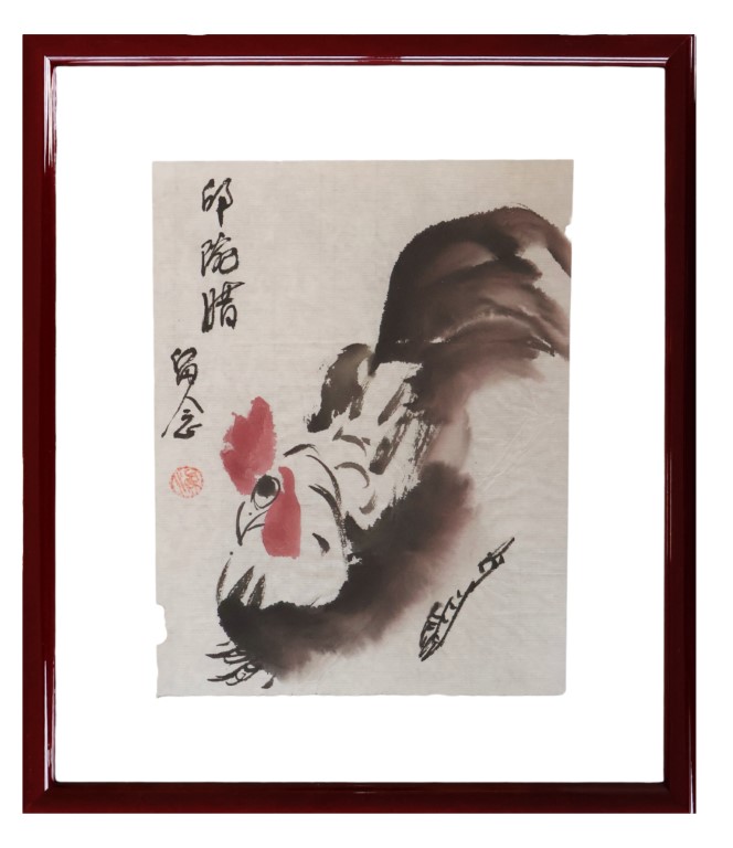 Anonimo orientale, Raffigurazione di gallo con iscrizioni in caratteri cinesi