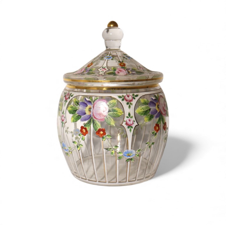 Con ghirlande di rose e fiori, coperchio con presa sferica