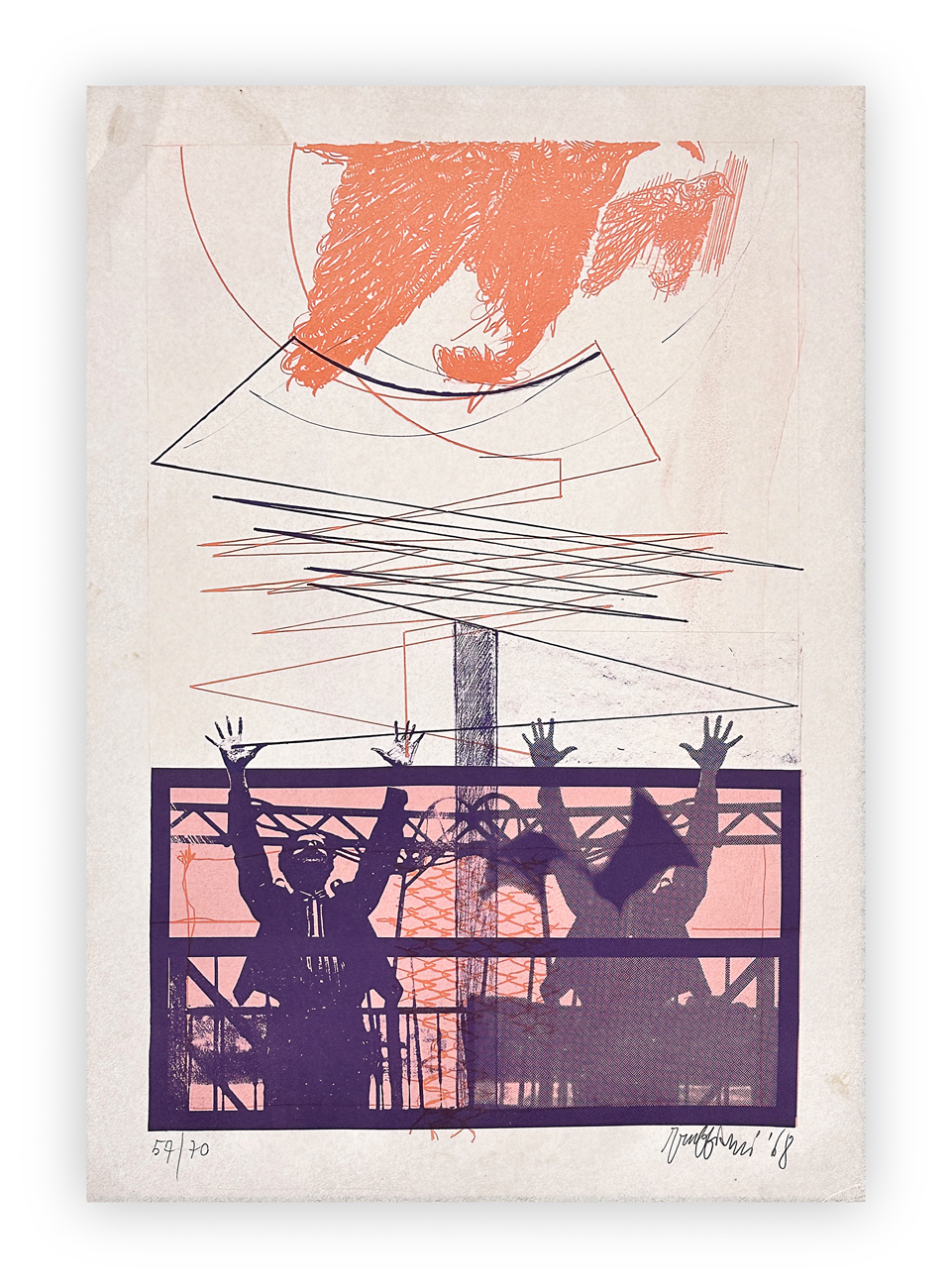 Firma, datazione e numerazione (Esemplare 57/70) a matita al fronte