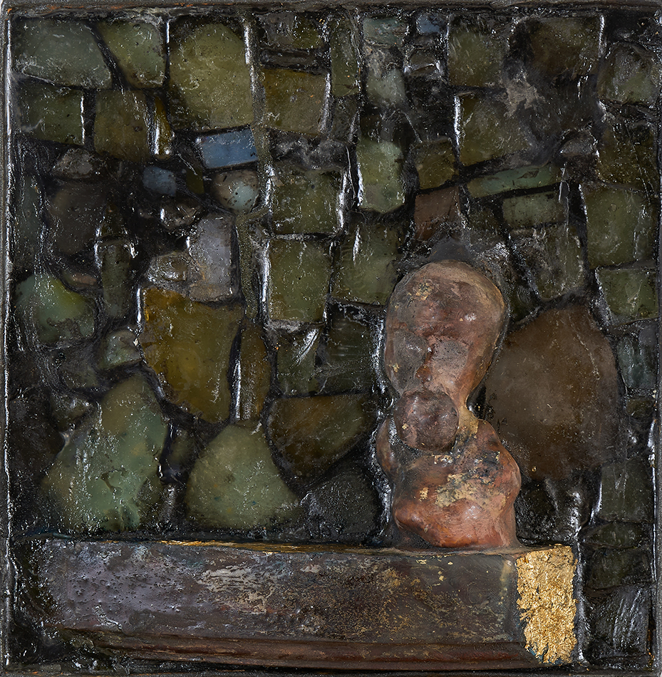 Legno, mosaico, resina e materiale organico, cm 20x20x6,5