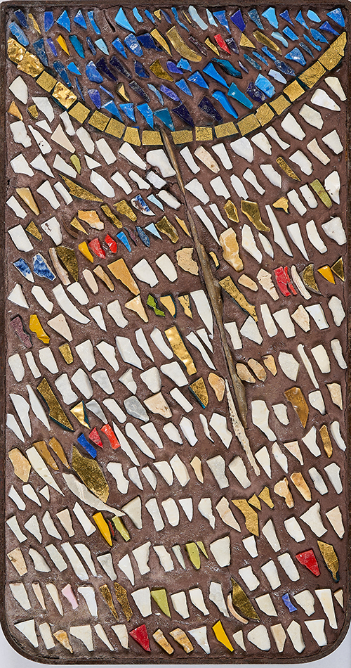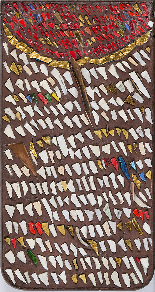 Tecnica double face bizantino con bronzo, oro, rame, conchiglia, marmo e pasta vitrea,