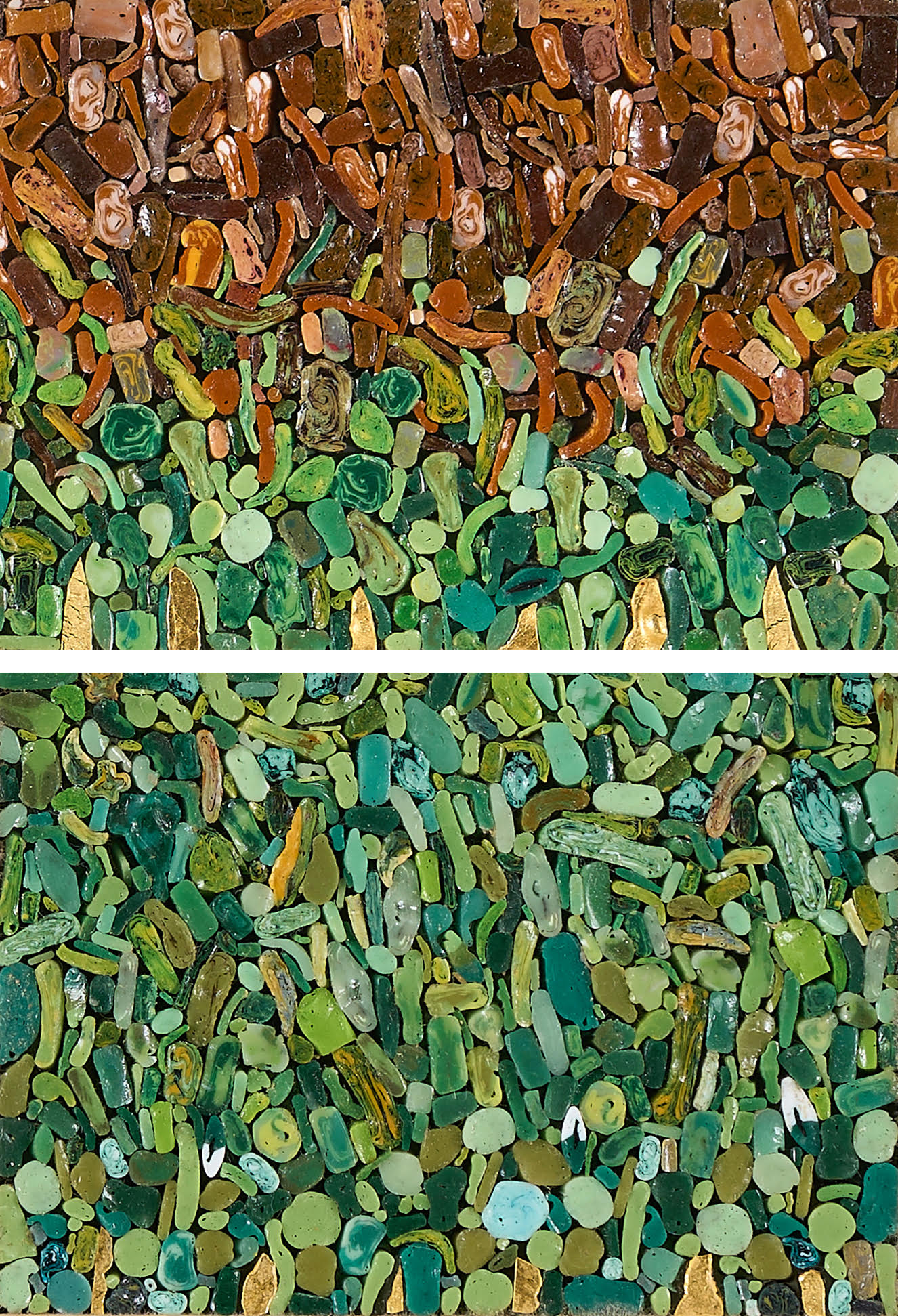 Mosaico filato in due parti su supporto in legno, cm 12x8x1,5 (totali)