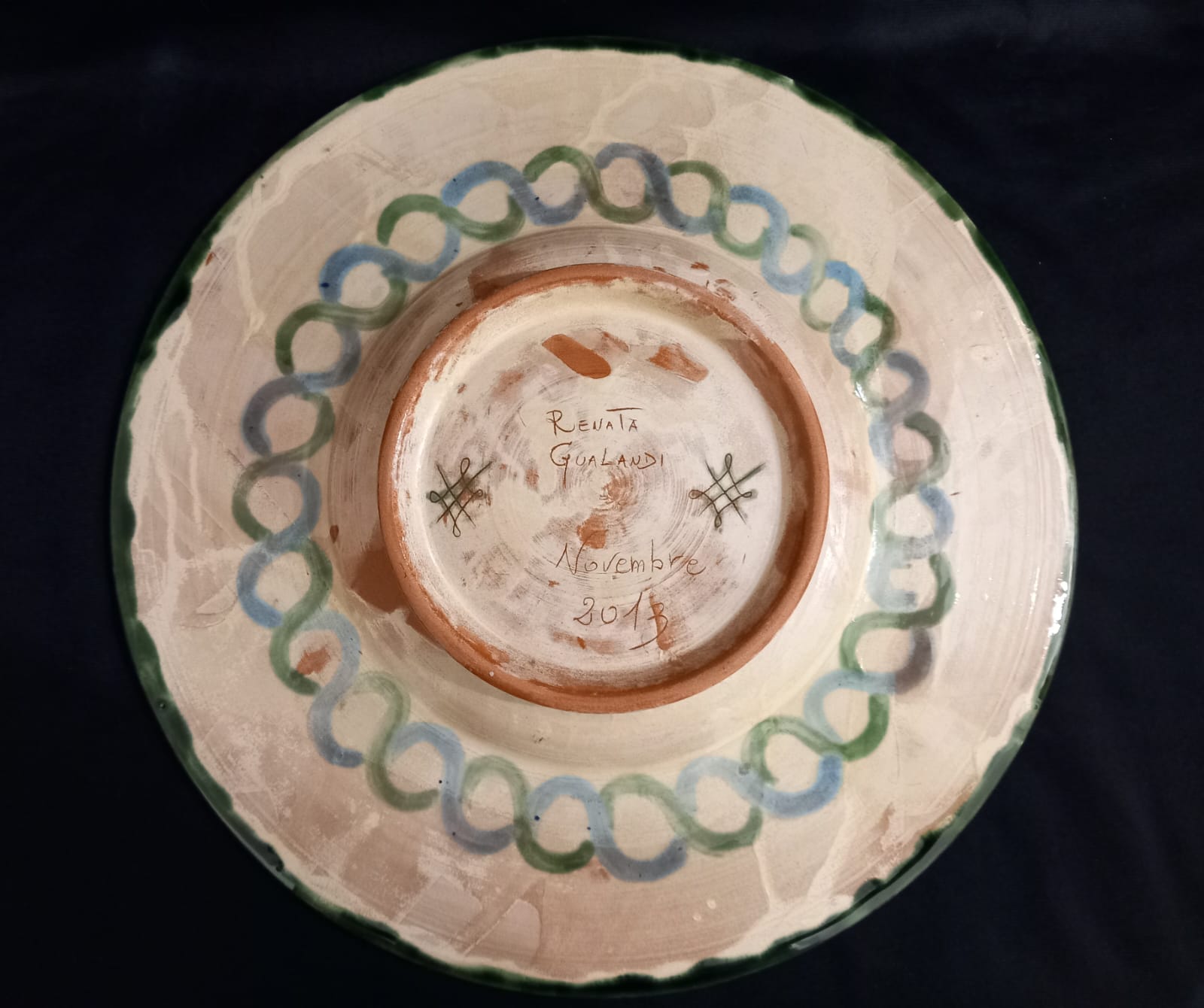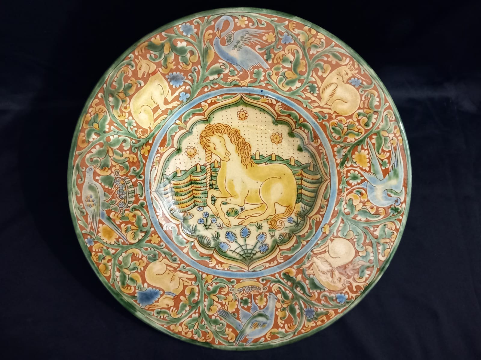 Piatto in ceramica graffita, ⌀ cm 35, altezza cm 4,5