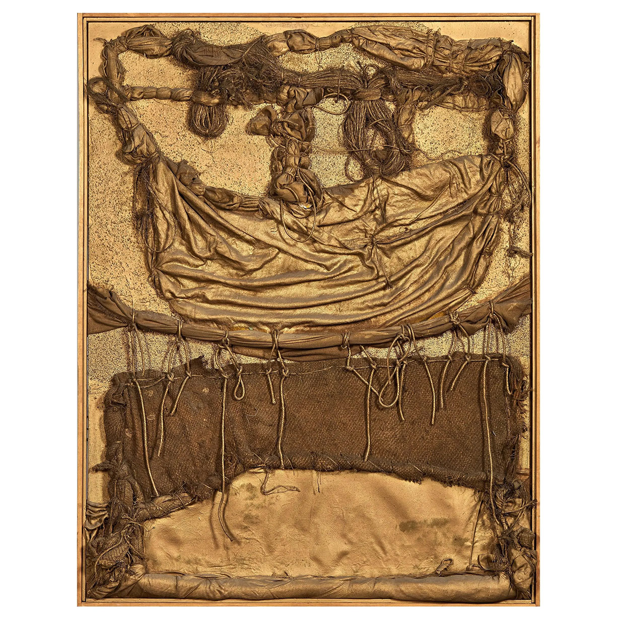 Tecnica mista su tela (stoffa, ricamo, acrilico oro) cm 120x90