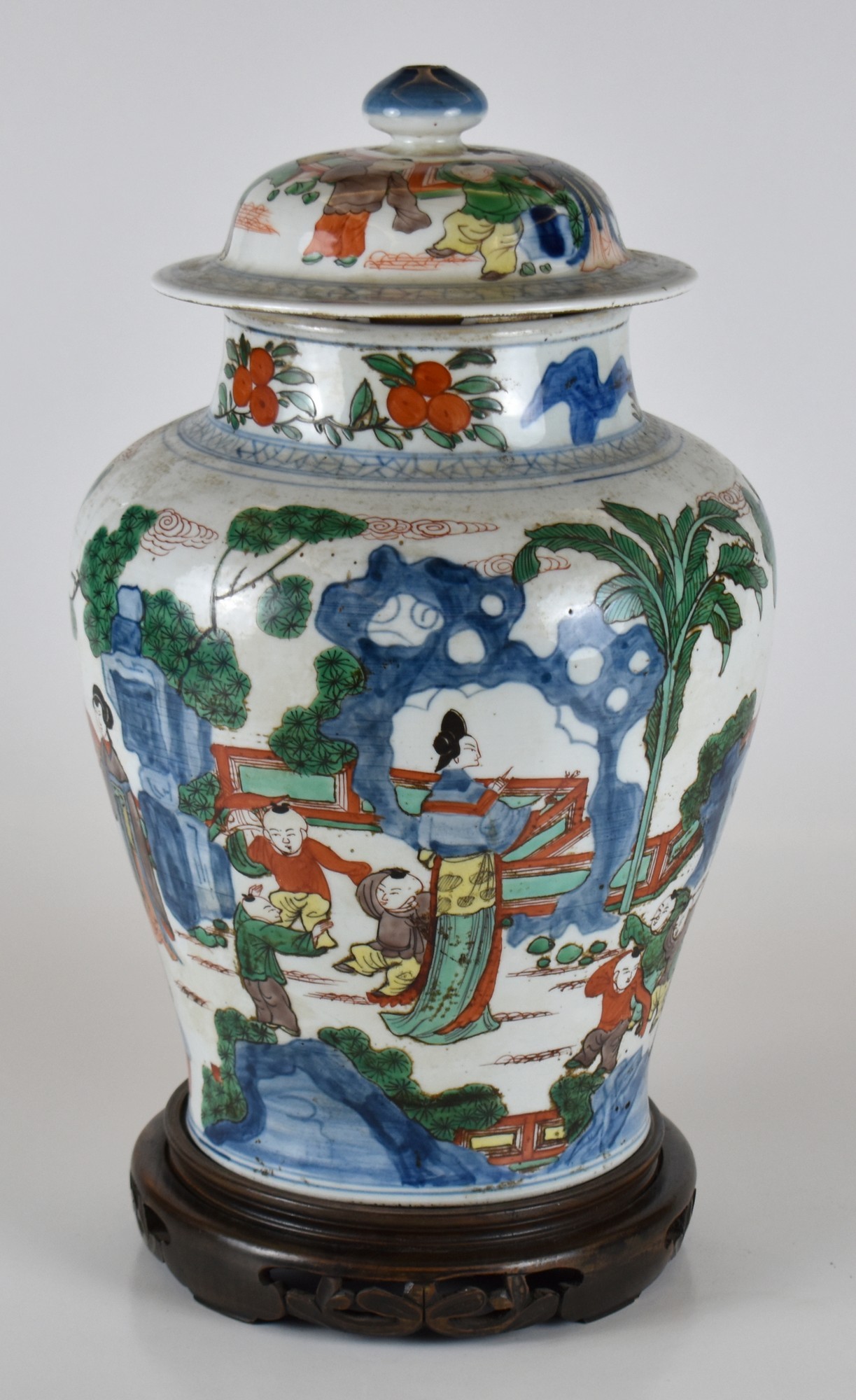 Cina vaso in porcellana con coperchio decorato con personaggi
