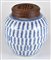 Cina vaso in porcellana bianca e blu decorato con scritte tappo in legno