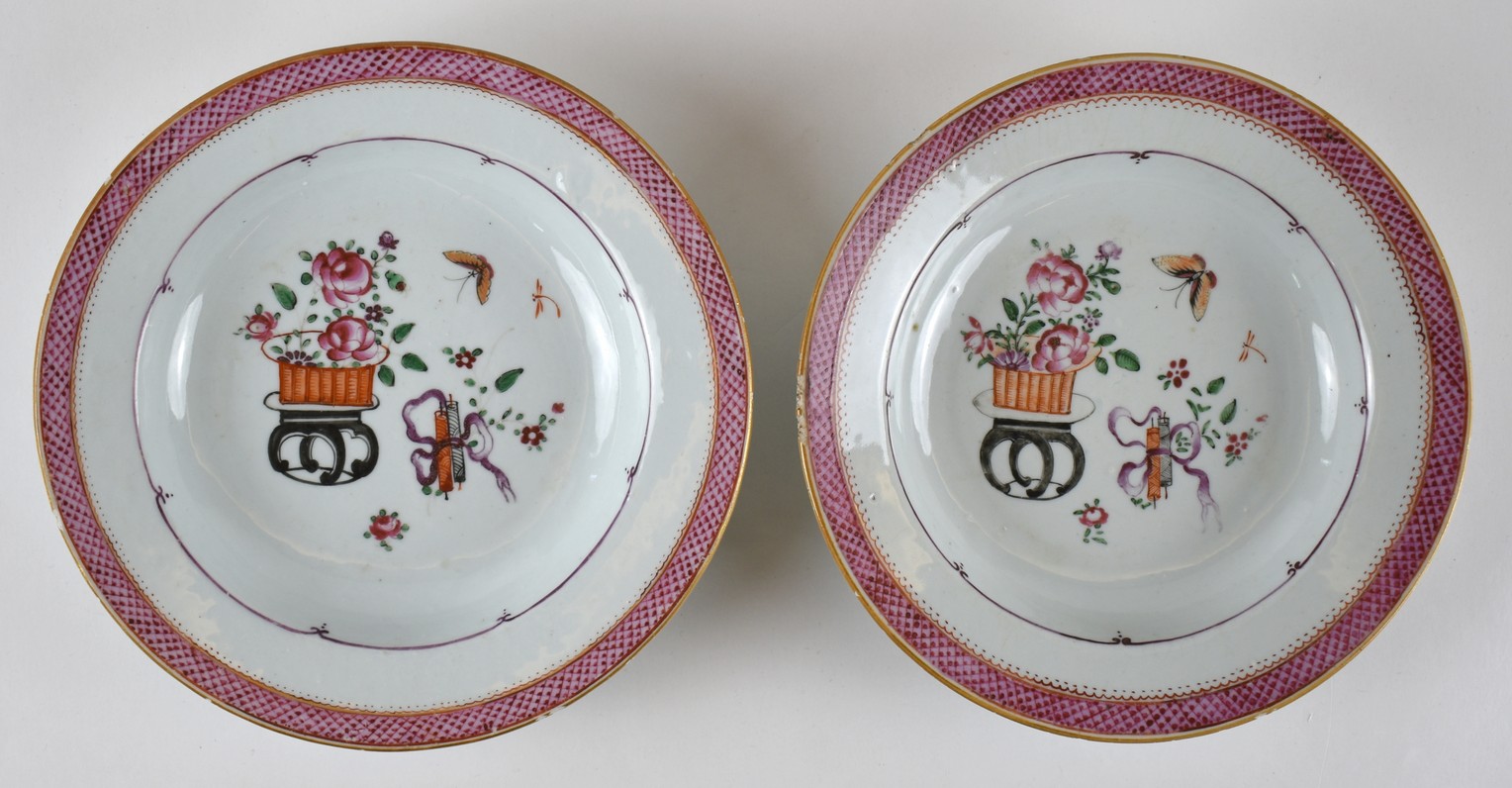 Cina coppia di piatti in porcellana nei toni della famiglia rosa