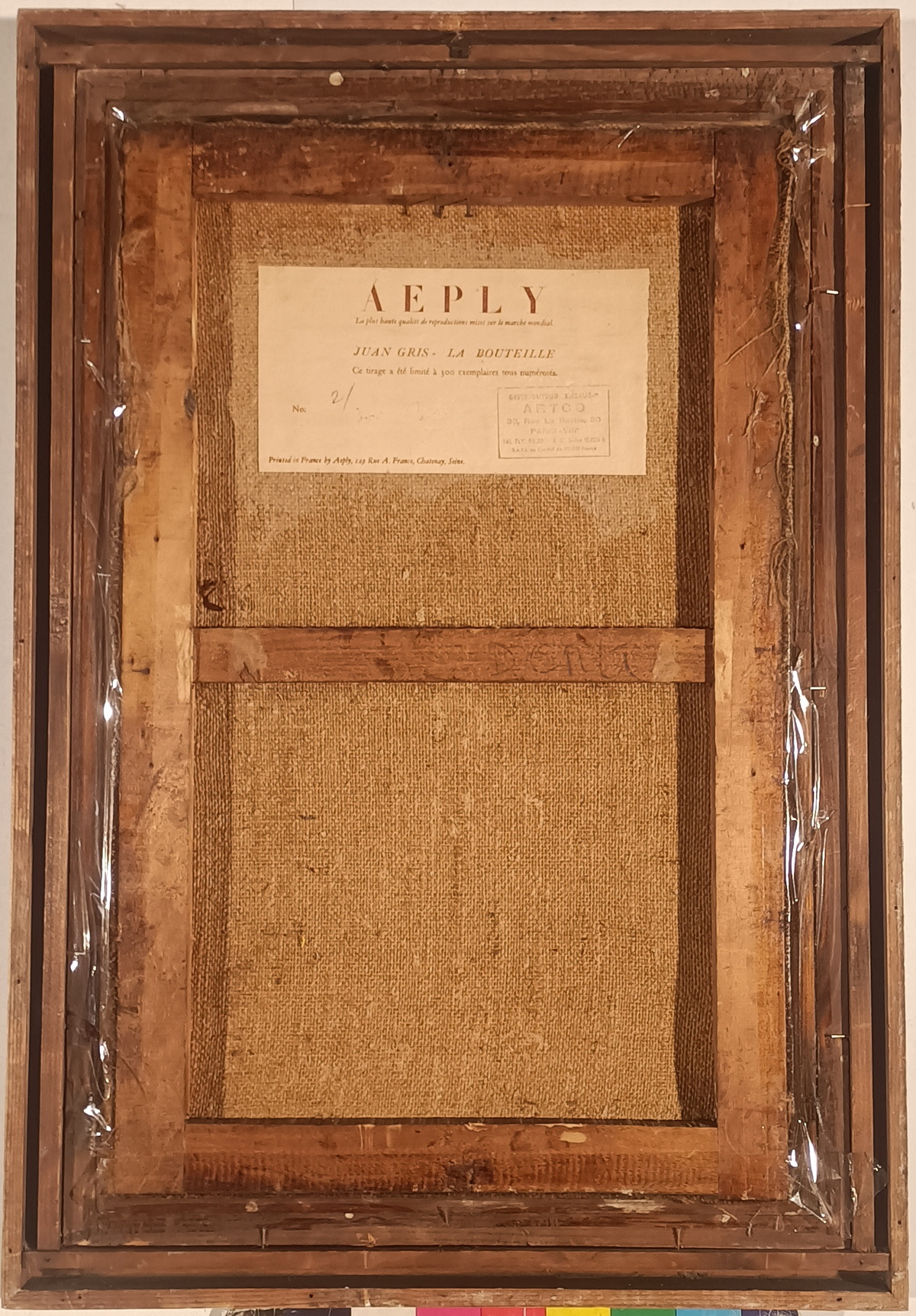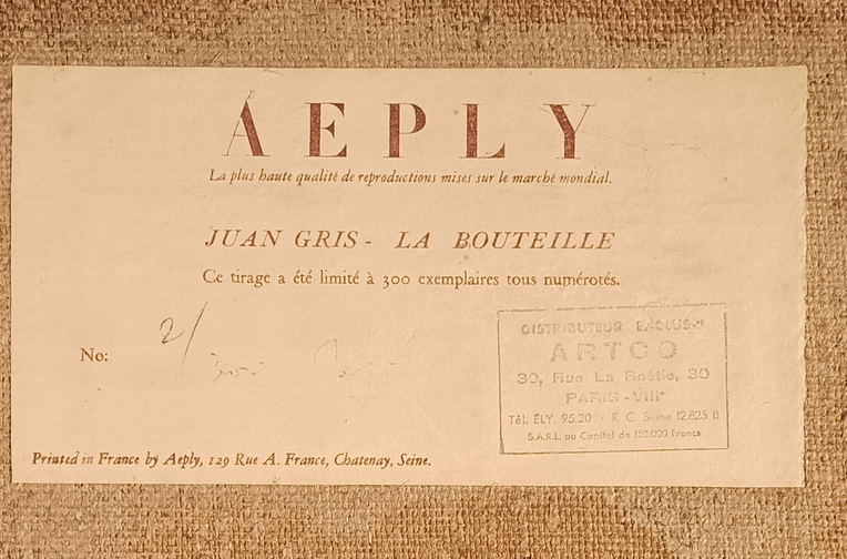 Etichetta la retro AEPLY dell'Atelier dell'autore con tutte le specifiche dell'opera.