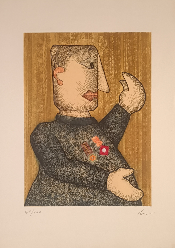 BAJ ENRICO Milano (Mi) 1924 Guerriero 1980 Acquaforte a colori e collage su...