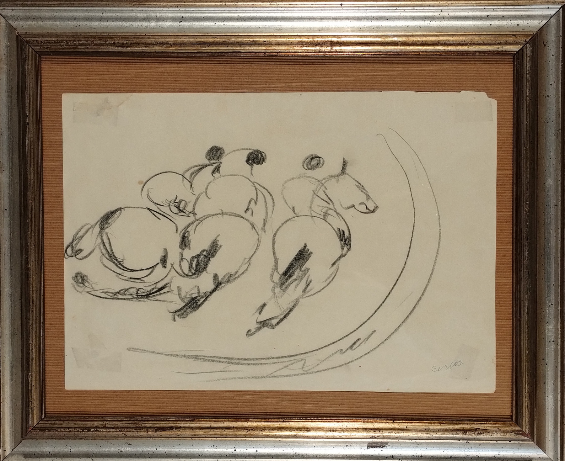 CESETTI GIUSEPPE Tuscania (Vt) 1902 Cavalli al galoppo Disegno a matita su...