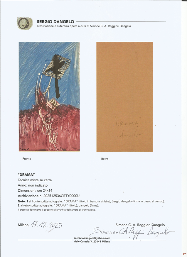 DANGELO SERGIO Milano (Mi) 1932 Drama Mista su cartoncino rigido 24,00x14,00...
