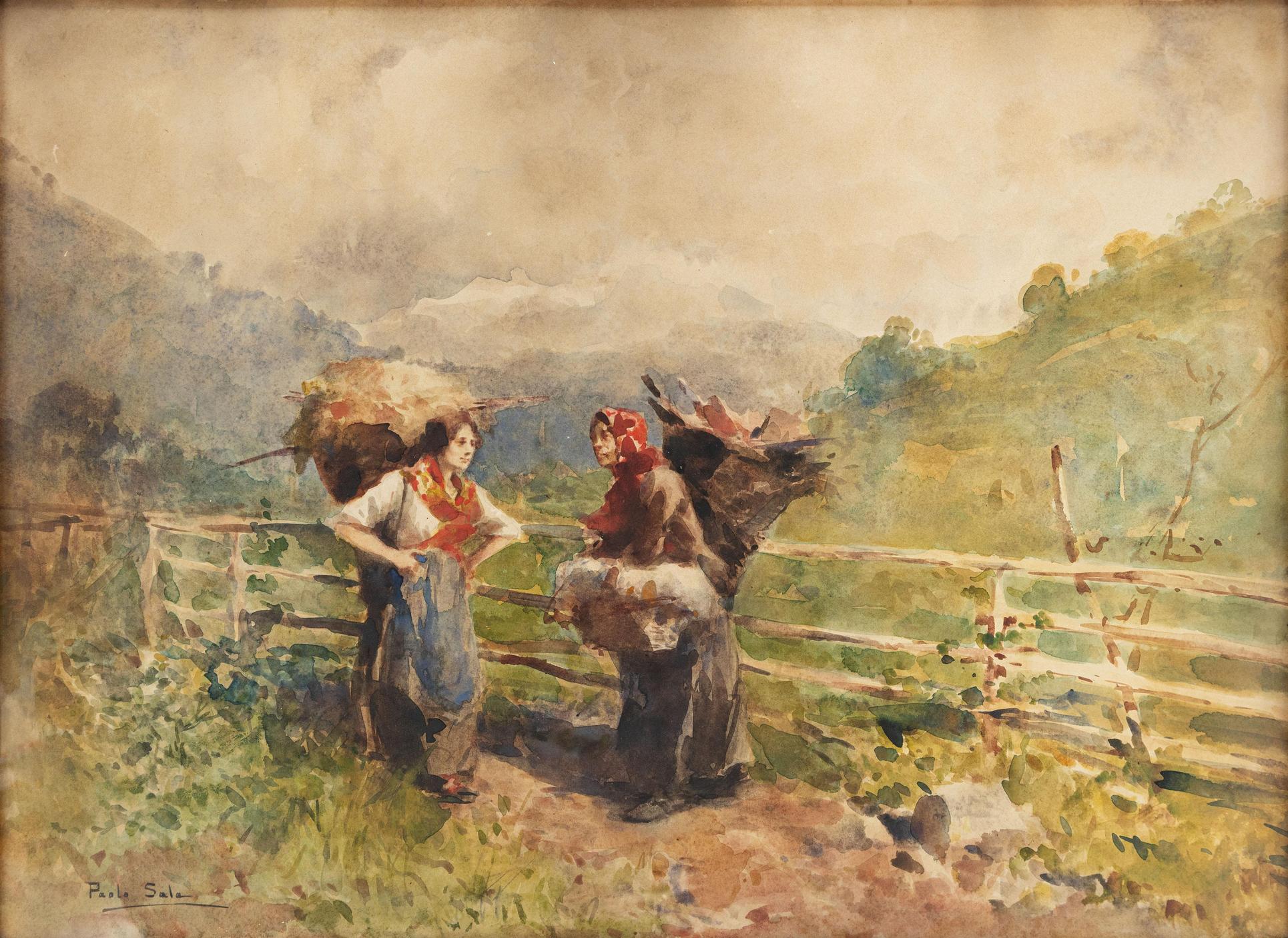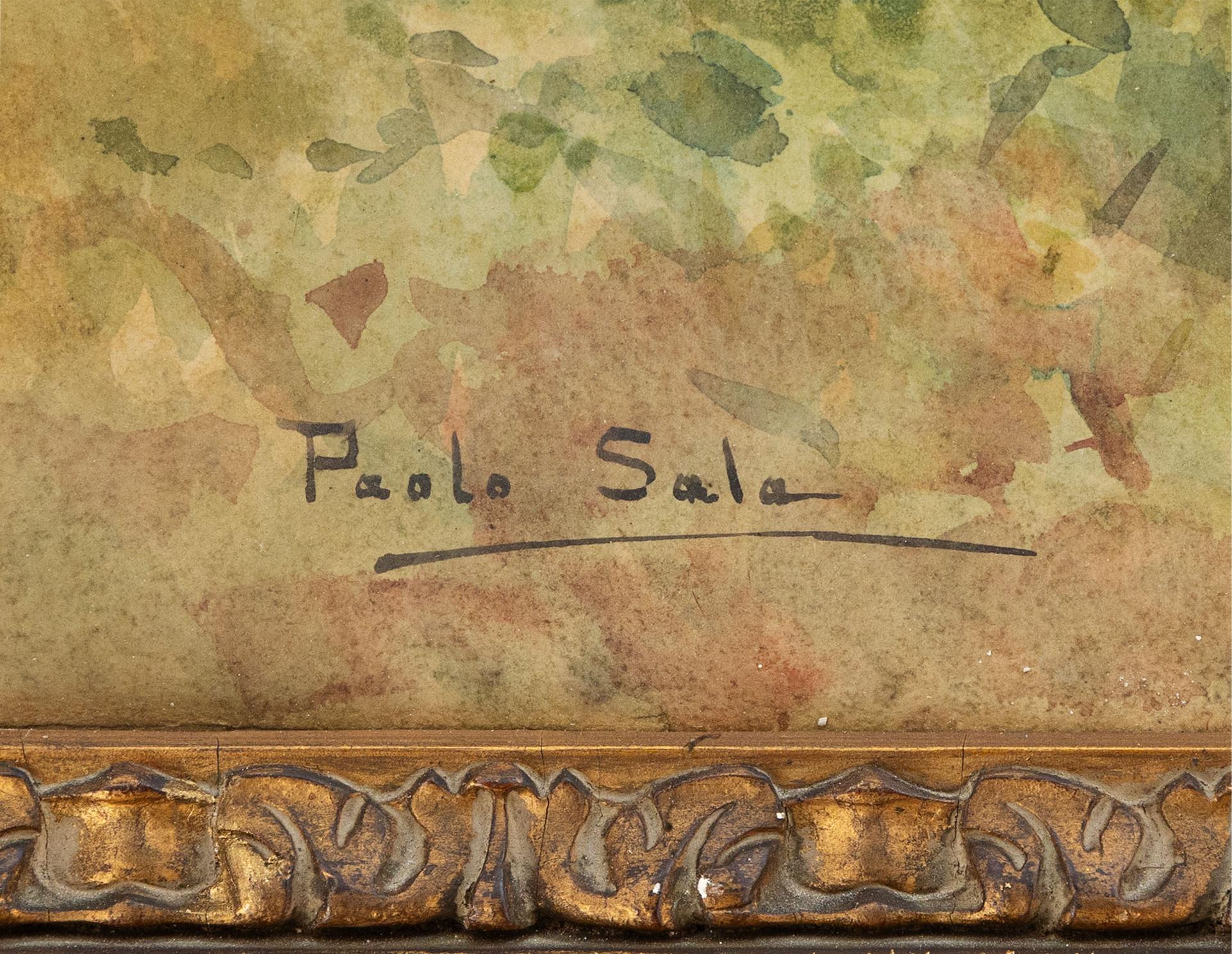- Paolo Sala nacque a Milano il 24 gennaio 1859 in una famiglia di origine brianzola e fin da giovane dimostrò una spiccata inclinazione per le arti. Inizialmente studiò architettura all’Accademia di Belle Arti di Brera per volere del padre, ma ben presto la sua passione per la pittura prese il sopravvento e lo portò a dedicarsi completamente a questa disciplina sotto la guida di Camillo Boito. Sala si affermò rapidamente come uno dei protagonisti della pittura paesaggistica italiana del suo tempo, distinguendosi per la capacità di ritrarre vedute, scene di genere e scorci urbani con eleganza e sensibilità.Il suo debutto espositivo avvenne alla Promotrice di Napoli nel 1880, dove presentò un’opera a olio che attirò l’attenzione della critica. Nei decenni successivi partecipò con regolarità a rassegne artistiche in tutta Italia, da Milano a Venezia, da Roma a Torino, consolidando la sua reputazione in ambito nazionale. Sala amava dipingere dal vero, all’aperto, cercando di cogliere la luce e l’atmosfera dei luoghi che visitava, e questo suo approccio lo avvicinò alle istanze più vitali della ricerca visiva dell’epoca.Artista dal respiro internazionale, Sala viaggiò molto, spingendosi oltre i confini italiani per visitare città e paesi in Francia, Inghilterra, Olanda, Sudamerica e Russia. In particolare in Russia ottenne incarichi prestigiosi, tra cui decorazioni per edifici importanti come il Palazzo d’Inverno e il conservatorio imperiale di San Pietroburgo, e ricoprì la cattedra di pittura presso l’Accademia di Mosca. Questi spostamenti arricchirono il suo linguaggio visivo e incrementarono la sua fama, tanto da rendere le sue opere apprezzate da collezionisti e nobiltà europee.Sala fu anche un abile organizzatore e promotore dell’arte: nel 1911 fondò a Milano la Società degli Acquarellisti Lombardi, di cui fu presidente, dando impulso alla diffusione dell’acquarello come tecnica di rilievo tra gli artisti della sua generazione. Predilesse particolarmente questa tecnica, con cui realizzò molte vedute cittadine, paesaggi naturali e scene di vita quotidiana, ma lavorò con uguale maestria anche a olio e a pastello.La sua pittura, spesso caratterizzata da una pennellata vivace e da un’attenzione raffinata alla luce e all’atmosfera, testimoniò un profondo amore per la natura e per i luoghi che incontrò lungo il suo percorso. Paolo Sala morì a Milano il 13 giugno 1924Paolo Sala nacque a Milano il 24 gennaio 1859 in una famiglia di origine brianzola e fin da giovane dimostrò una spiccata inclinazione per le arti. Inizialmente studiò architettura all’Accademia di Belle Arti di Brera per volere del padre, ma ben presto la sua passione per la pittura prese il sopravvento e lo portò a dedicarsi completamente a questa disciplina sotto la guida di Camillo Boito. Sala si affermò rapidamente come uno dei protagonisti della pittura paesaggistica italiana del suo tempo, distinguendosi per la capacità di ritrarre vedute, scene di genere e scorci urbani con eleganza e sensibilità.Il suo debutto espositivo avvenne alla Promotrice di Napoli nel 1880, dove presentò un’opera a olio che attirò l’attenzione della critica. Nei decenni successivi partecipò con regolarità a rassegne artistiche in tutta Italia, da Milano a Venezia, da Roma a Torino, consolidando la sua reputazione in ambito nazionale. Sala amava dipingere dal vero, all’aperto, cercando di cogliere la luce e l’atmosfera dei luoghi che visitava, e questo suo approccio lo avvicinò alle istanze più vitali della ricerca visiva dell’epoca.Artista dal respiro internazionale, Sala viaggiò molto, spingendosi oltre i confini italiani per visitare città e paesi in Francia, Inghilterra, Olanda, Sudamerica e Russia. In particolare in Russia ottenne incarichi prestigiosi, tra cui decorazioni per edifici importanti come il Palazzo d’Inverno e il conservatorio imperiale di San Pietroburgo, e ricoprì la cattedra di pittura presso l’Accademia di Mosca. Questi spostamenti arricchirono il suo linguaggio visivo e incrementarono la sua fama, tanto da rendere le sue opere apprezzate da collezionisti e nobiltà europee.Sala fu anche un abile organizzatore e promotore dell’arte: nel 1911 fondò a Milano la Società degli Acquarellisti Lombardi, di cui fu presidente, dando impulso alla diffusione dell’acquarello come tecnica di rilievo tra gli artisti della sua generazione. Predilesse particolarmente questa tecnica, con cui realizzò molte vedute cittadine, paesaggi naturali e scene di vita quotidiana, ma lavorò con uguale maestria anche a olio e a pastello.La sua pittura, spesso caratterizzata da una pennellata vivace e da un’attenzione raffinata alla luce e all’atmosfera, testimoniò un profondo amore per la natura e per i luoghi che incontrò lungo il suo percorso. Paolo Sala morì a Milano il 13 giugno 1924.