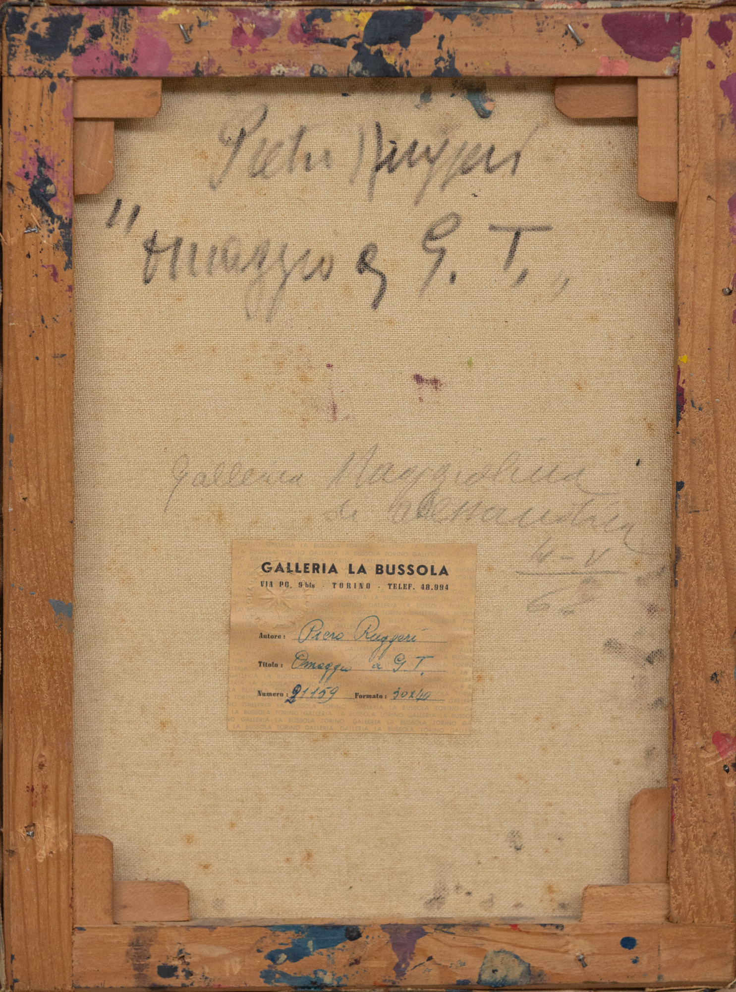 Etichetta al retro Galleria La Bussola, Torino