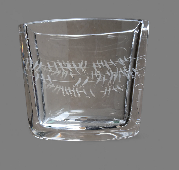 VASO IN CRISTALLO CON DECORAZIONI E FIRMA INCISE H.CM.13,5