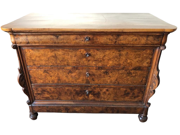 CASSETTONE LUIGI FILIPPO LASTRONATO IN PIUMA DI NOCE XIX SECOLO CM.121X59 H.CM.94