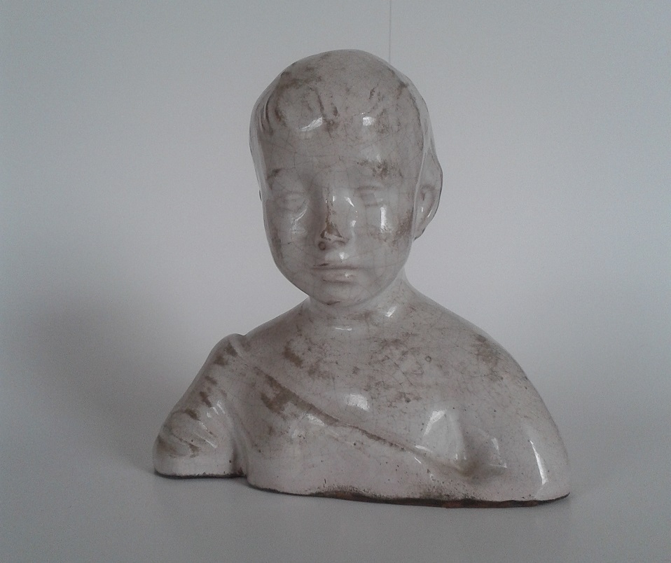ANTICO BUSTO INFANTILE IN TERRACOTTA INVETRIATA H.CM.16 LIEVI DIFETTI