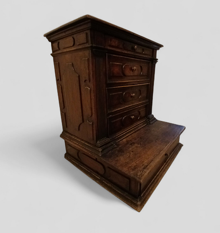 Lot 22 | ANTICO INGINOCCHIATOIO IN NOCE A CINQUE CASSETTI CM.80X70 H.CM.89 LIEVI DIFETTI