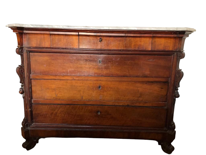 Lot 23 | CASSETTONE LUIGI FILIPPO LASTRONATO IN NOCE CON PIANO IN MARMO BIANCO...