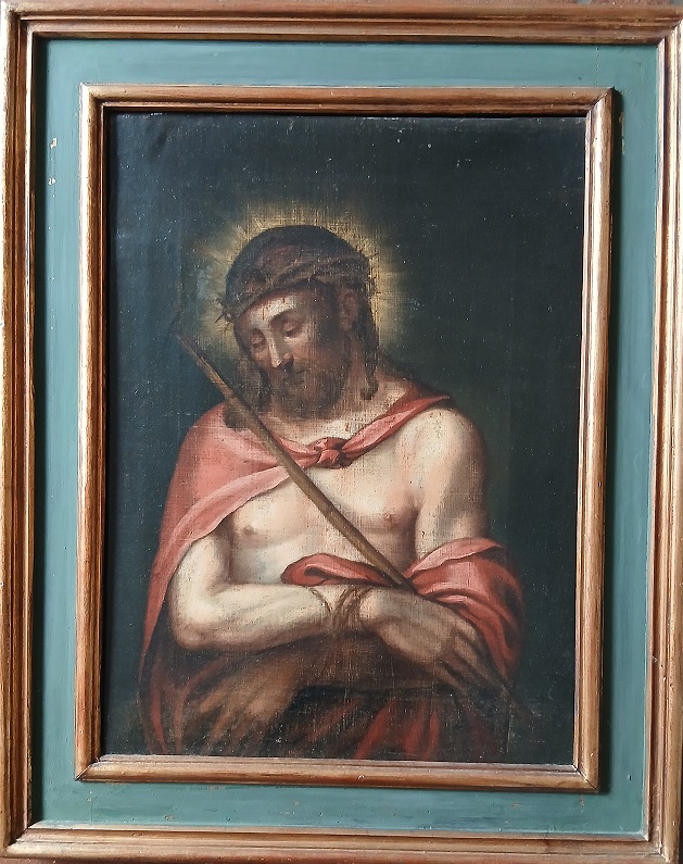 SCUOLA DEL XVIII SECOLO - ECCE HOMO - OLIO SU TELA CM.62,5X46,5 IN CORNICE ANTICA - CARTIGLIO CON PERIZIA AL RETRO