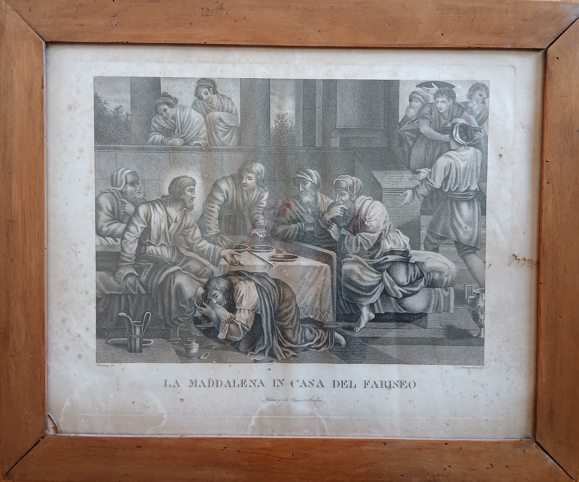 GIOVANNI BERNARDONI (1790-1871) - SCENA BIBLICA - ACQUAFORTE CM.41X51 IN CORNICE - ED. RANIERI FANFANI MI - MOLTI DIFETTI E FIORITURE