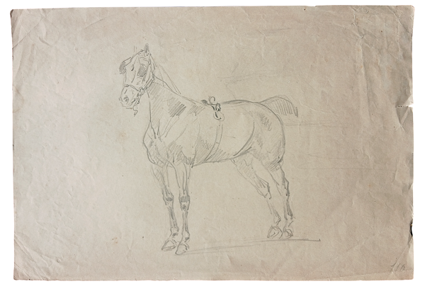 STUDIO PER CAVALLO - MATITA SU CARTA CM. 20,6X30,5 - NUMERATO IN BASSO A DESTRA - LIEVI DIFETTI