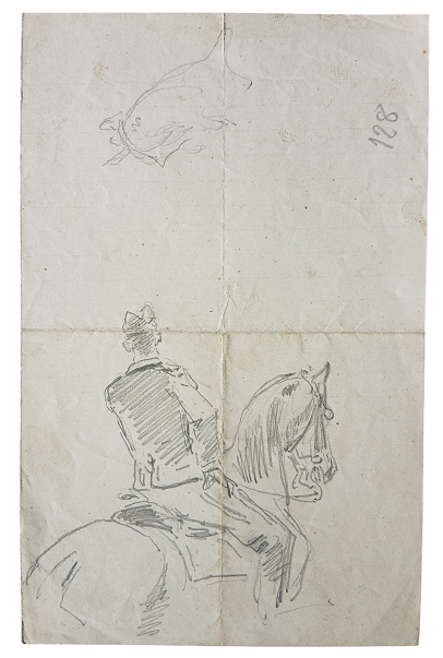Lot 66 | STUDIO PER SOLDATO A CAVALLO - MATITA SU CARTA CM. 21X13,3 - PIEGATURA ALLA...