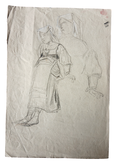 Lot 70 | STUDIO PER FIGURA FEMMINILE - MATITA E BIACCA SU CARTA CM. 32X22 - MACCHIE DI...