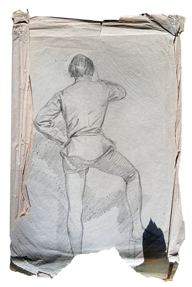 STUDIO PER FIGURA DI SPALLE - MATITA GRASSA SU CARTA SOTTILE CM. 37X28 - MANCANZE E PIEGATURE ALLA CARTA - SENZA CORNICE