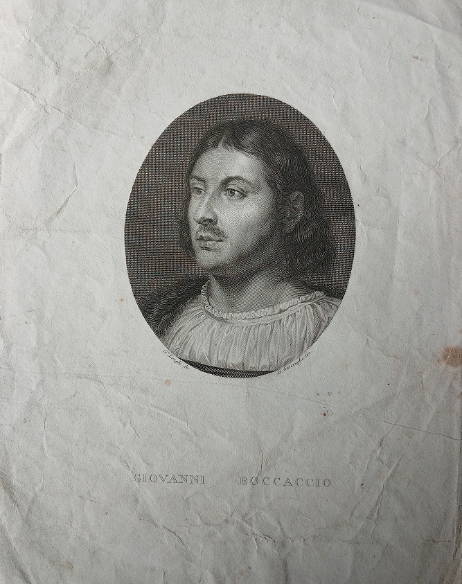 RITRATTO DI GIOVANNI BOCCACCIO - LITOGRAFIA CM. 25,2X20 FIRMATA - XIX SECOLO - LIEVI DIFETTI - SENZA CORNICE