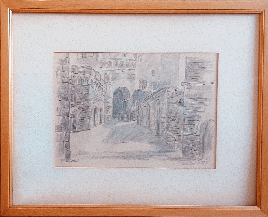 MARIO VELLANI MARCHI (1895-1979) - S.GIMIGNANO 1967 - PASTELLI SU CARTA CM.34X42,5 - ETICHETTA GALLERIA PONTE ROSSO MILANO AL RETRO