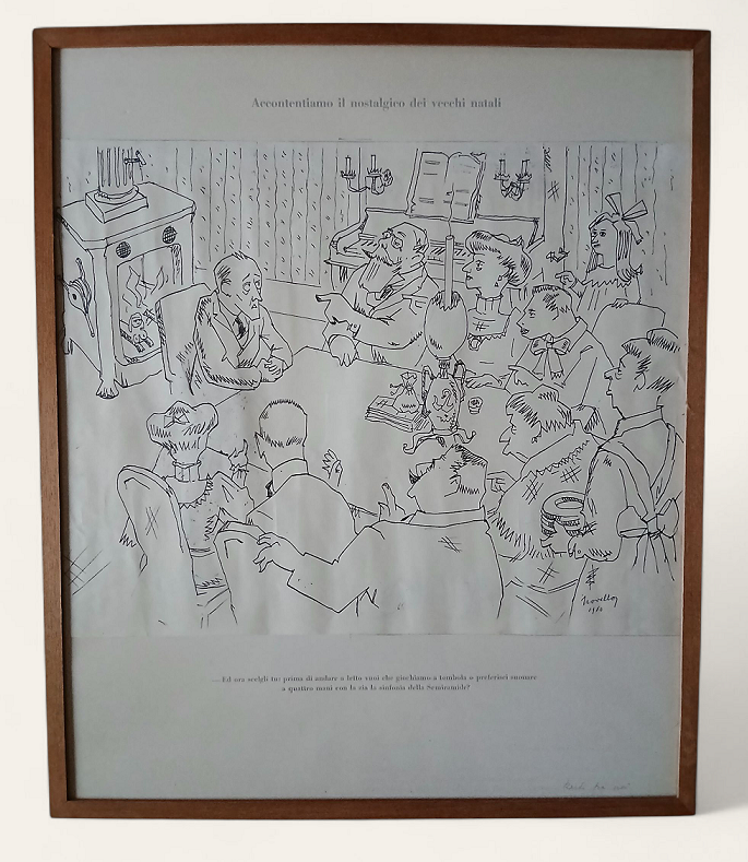 GIUSEPPE NOVELLO (1897-1988) - ACCONTENTIAMO IL NOSTALGICO DEI VECCHI NATALI - CHINA SU CARTA CM.50X39 FIRMATO - IN CORNICE