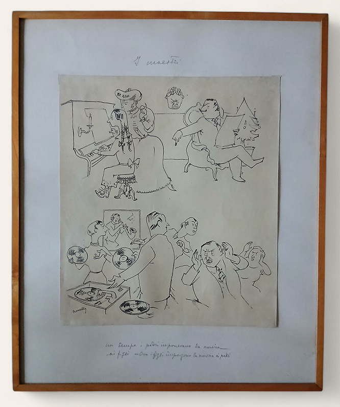 GIUSEPPE NOVELLO (1897-1988) - I MAESTRI - CHINA SU CARTA CM.41X36 FIRMATO - IN CORNICE