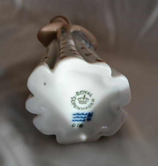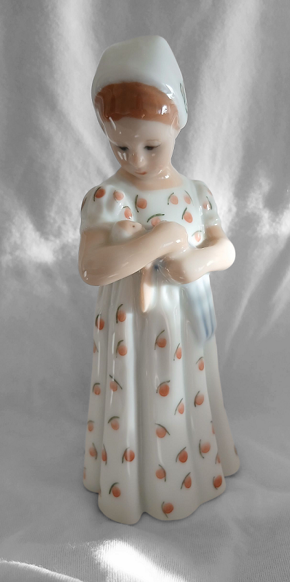 MANIFATTURA ROYAL COPENHAGEN - MARY CON BAMBOLA - PORCELLANA POLICROMA H.CM.15 - RECA MARCHIO ALLA BASE