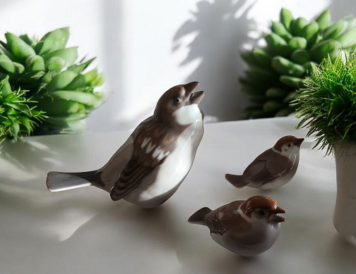 B&G (BING & GRONDAHL) - TRE VOLATILI - PORCELLANA POLICROMA H.MAX CM.13 -...