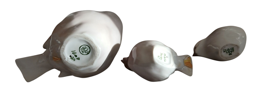 B&G (BING & GRONDAHL) - TRE VOLATILI - PORCELLANA POLICROMA H.MAX CM.13 - RECANO MARCHIO ALLA BASE